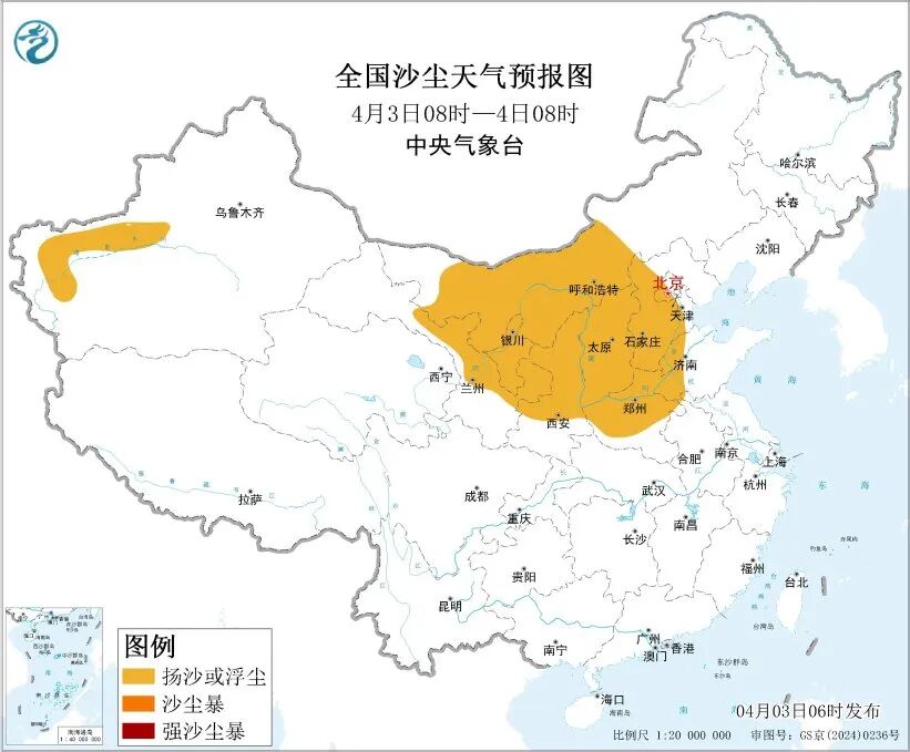 今早 中央气象台发布 多个预警 中央气象台4月3日06时 继续发布强对流天气蓝色预警 ↓↓ 预计4月3日08时至4日08时,华北东部、东北地区南部、江南东部、华南中东部等地的部分地区将有8级以上雷暴大风或冰雹天气,其中,辽宁西部、河北东部、天津、山东北部、广西南部、广东北部等地的部分地区将有10级以上雷暴大风,最大风力可达11级以上;江南东部和南部、华南等地的部分地区将有小时雨量大于20毫米的短时强降水天气,其中,湖南南部、广东北部等地局地小时雨量大于50毫米。 预计,强对流的主要影响时段为今天白天。 ![]() ![]() 中央气象台4月3日06时 继续发布大风黄色预警 ↓↓ 预计,4月3日08时至4日08时,受蒙古气旋影响,内蒙古中东部、陕西中北部、山西大部、河北、北京、天津、河南北部、山东北部、辽宁大部等地部分地区有5~7级大风,阵风8~10级。受冷空气和对流共同作用影响,辽宁西部、河北东部、天津、山东北部、广西南部、广东北部等地局地有10~11级雷暴大风。渤海、渤海海峡、黄海北部海域、东海大部海域将有8~9级、阵风10~11级的大风。 ![]() 中央气象台4月3日06时 继续发布沙尘暴蓝色预警 ↓↓ 受冷空气大风影响,预计4月3日08时至4日08时,新疆南部、内蒙古中西部、甘肃中东部和河西、宁夏、陕西中北部、山西、北京西南部、天津西部、河北中南部、河南中北部、山东西部等地的部分地区有扬沙或浮尘天气。